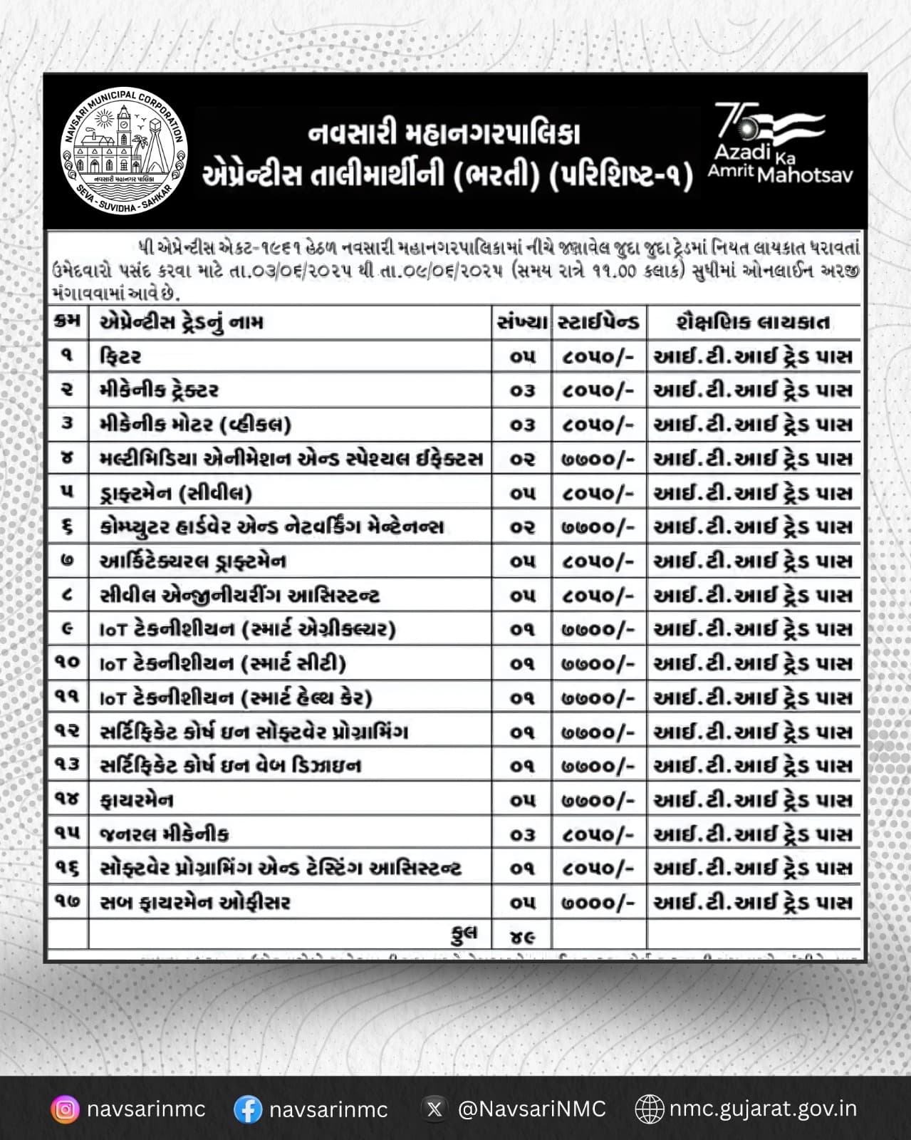 વધુ માહિતી માટે કૃપા કરીને જોડેલ દસ્તાવેજ જુઓ : એપ્રેન્ટિસ-નોટિસ પેજ